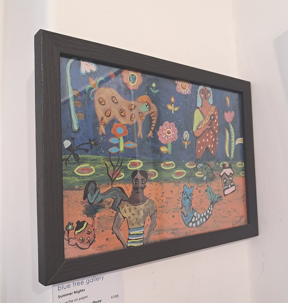 My current body of paintings draw on my life-long love of folk art imagery, outsider art, fabric collections, surface pattern designs and personal experiences to construct mind maps of my inner journeys. I end up telling stories through my work which sometimes even surprise me.